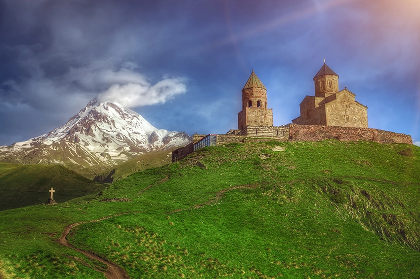 我们将下山至圣三一教堂,然后乘坐小型面包车前往斯特潘茨明达村。入住我们在行程第一天所住的同一家酒店。晚上,在格鲁吉亚餐厅享用庆祝晚宴,搭配最好的格鲁吉亚葡萄酒,并颁发卡兹别克登顶奖牌和证书。
