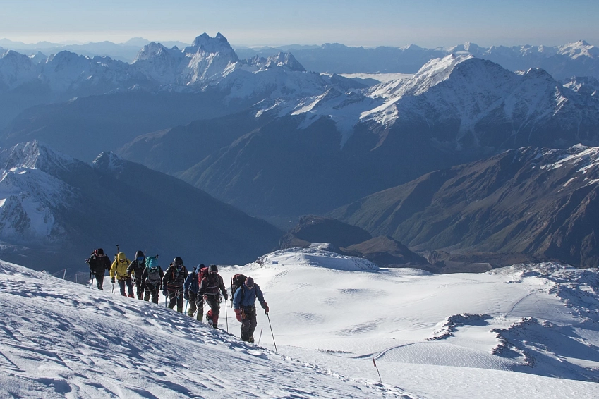 乘坐缆车下到山谷。接送至酒店,在酒店享用午餐。当天剩余时间的活动将与团队成员现场协商决定。可能的活动选项包括穿越森林前往纳尔赞矿泉的徒步,或体验带有桦木枝和冰浴的正宗俄式桑拿(不包含在行程费用中)。晚上将举行庆祝晚宴,并颁发奖牌和证书。如有需要,这一天也可作为厄尔布鲁士登顶的备用日。