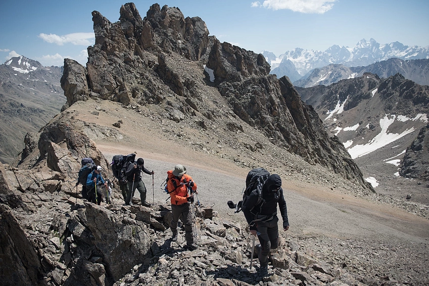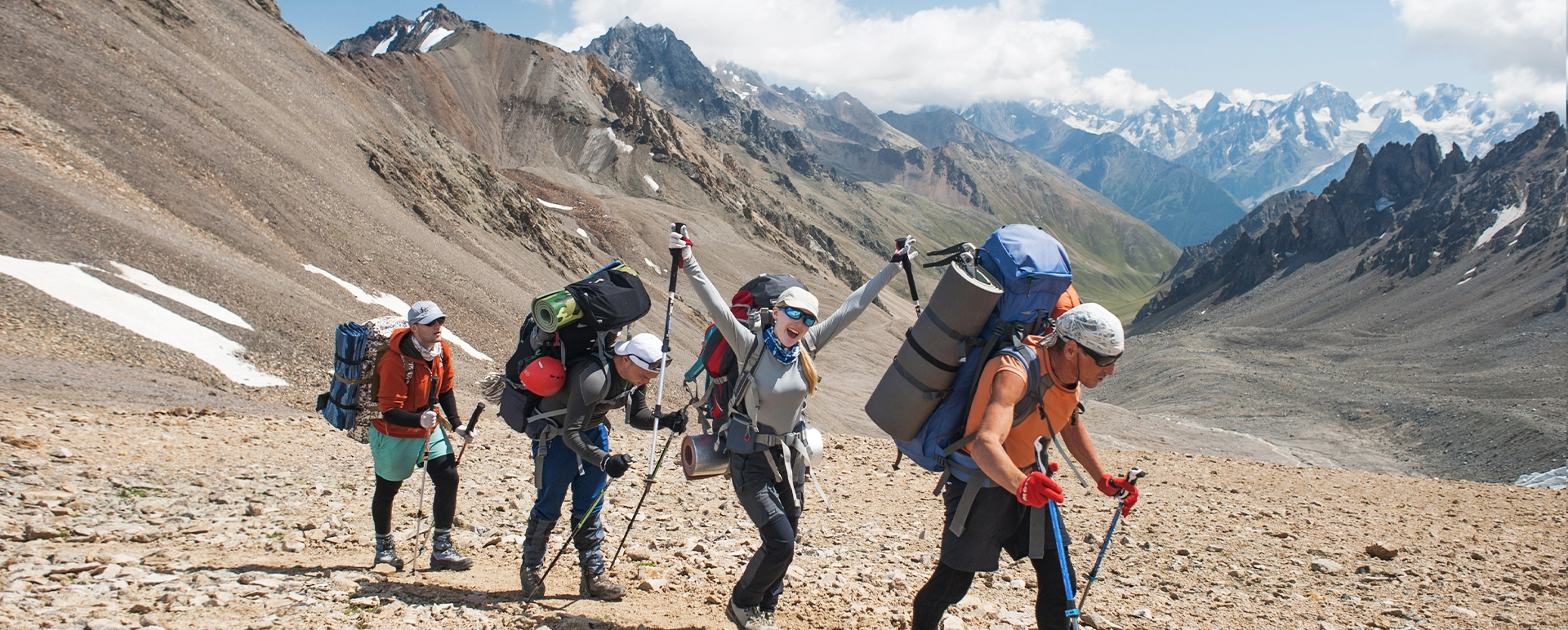 Daily hikes with 15 kg backpacks. No technical skills needed. A support team assists along the way.