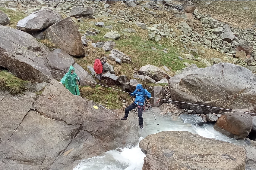 You’ll learn basic mountaineering skills and cross a rushing mountain river using fixed cables.