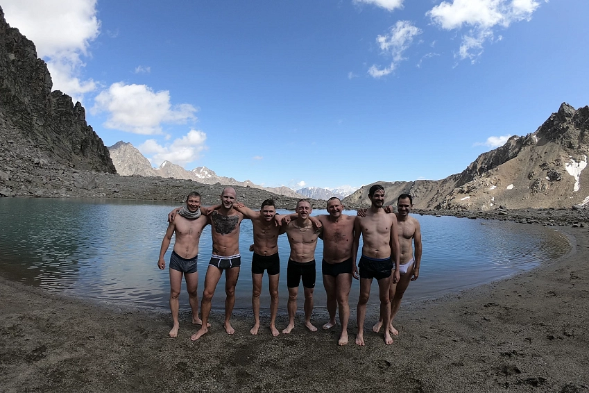 Today we spend the whole day climbing Paton Peak (3,930 m). This is not only a beautiful route but also an excellent acclimatization climb. The trail begins with a crossing of a fast mountain river using fixed steel cables that we installed here a few years ago. We continue up over rocks to reach the ridge. From the summit, there’s a panoramic view of Mount Elbrus, the Achkeryakol lava flow — a side crater of Elbrus — as well as the surrounding mountains and valleys. On the descent, we’ll stop for lunch by a mountain lake.