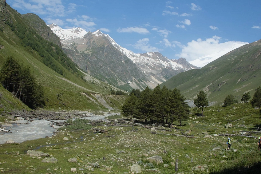 After breakfast at the hotel, we drive to the starting point of the route — the village of Elbrus. The transfer takes about three hours. From there, we hike up through the beautiful Irik Chat Valley, stopping by a natural Narzan spring — a unique, sparkling mineral water source. Camp 1 is set in a pine forest next to a river and a small waterfall where you can take a refreshing dip.