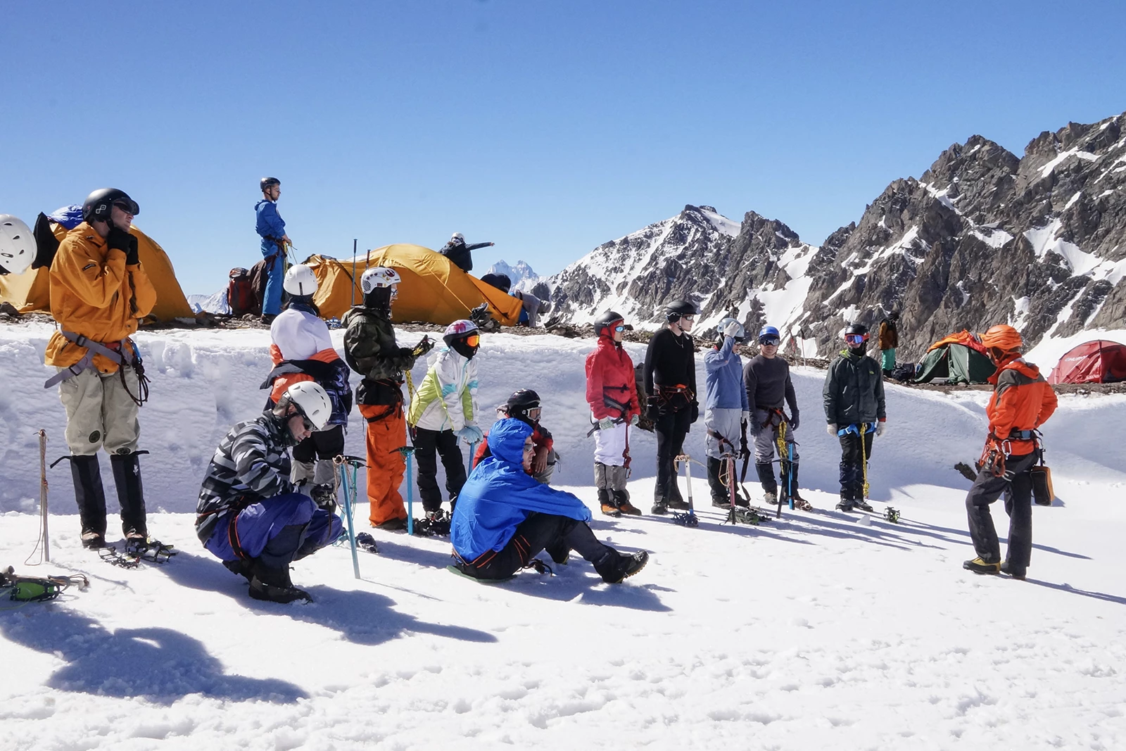 Today we traverse a wide snow-and-ice plateau — a glacier that we’ll cross roped together, as there are many hidden crevasses beneath the snow. We approach the lower rocks of the Achkeryakol lava flow and continue a bit higher to an altitude of 4,000 m. This is Camp 3 — our summit camp. In the afternoon, we’ll hold another training session to practice two essential mountaineering skills: walking in crampons on snow and ice, and self-arrest technique with an ice axe on an icy slope. Elevation gain: 400 m.